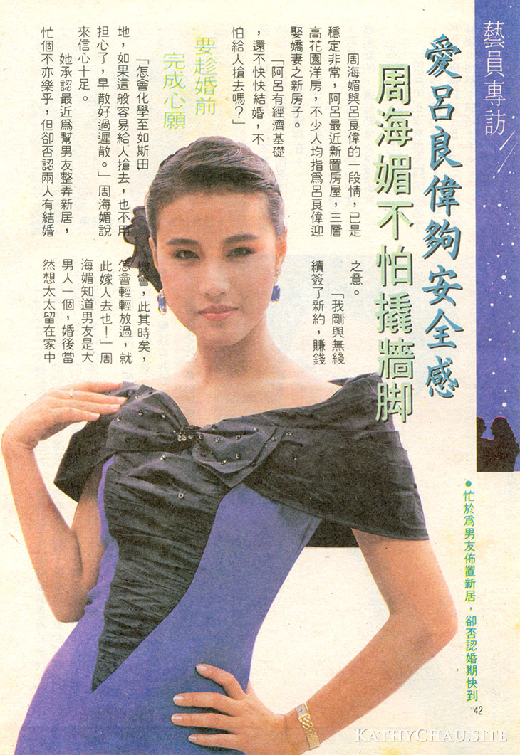 不過,對於那位女星的說話筆者倒有點懷疑,因爲從周海媚參選港姐開始而今,認識她接近三年了,她一向待人態度不錯,也從沒因爲受力捧而有所改變。