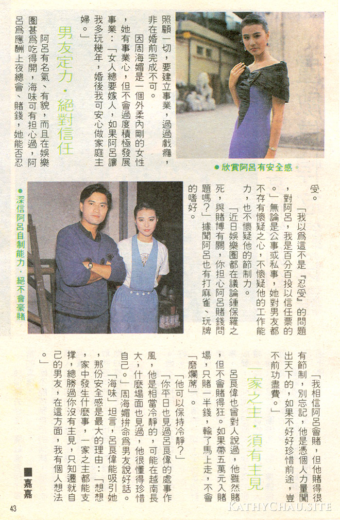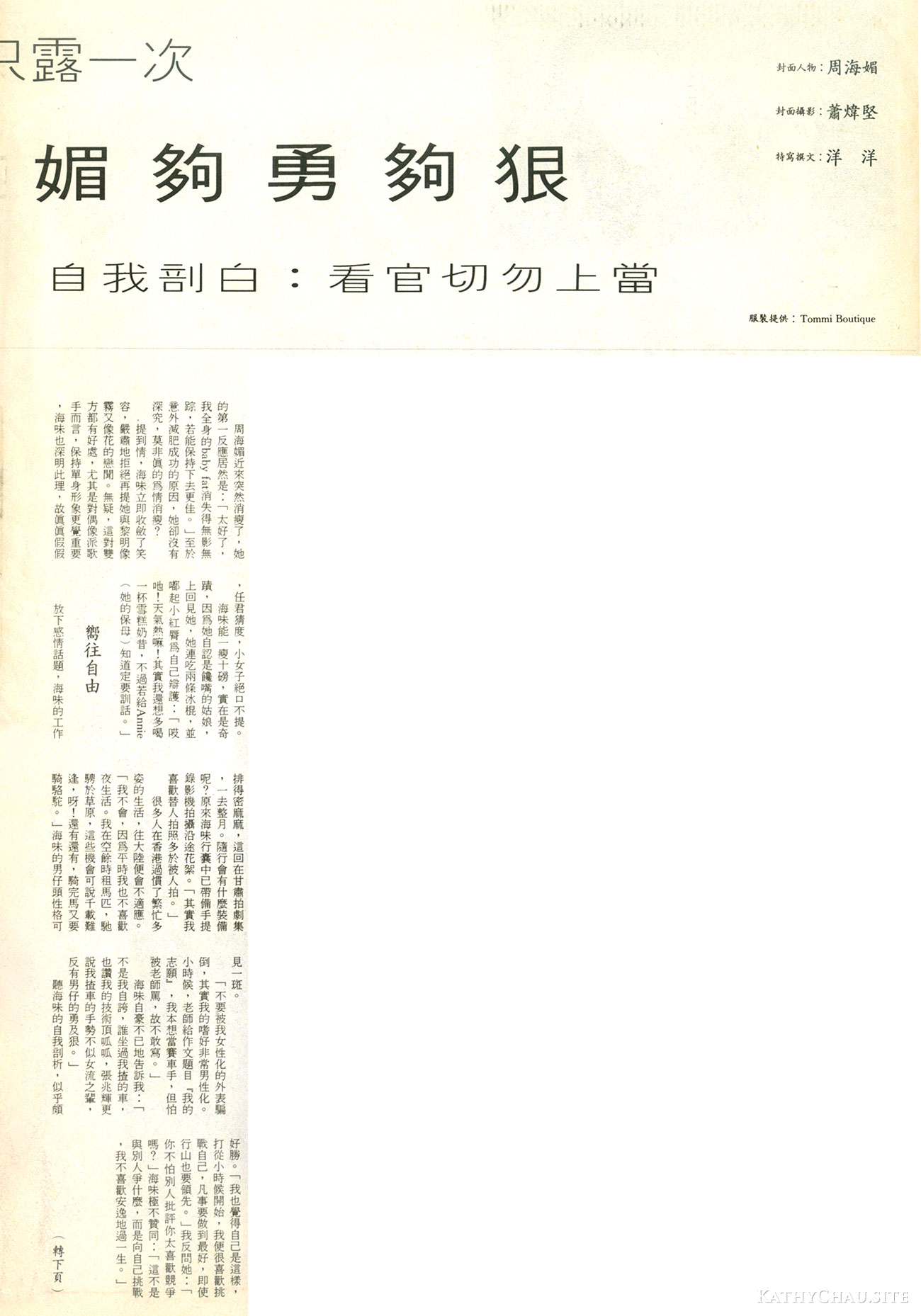 「是啊!我的脾氣很大的,別人看我的外表,老是想不到我會是發大脾氣的種人。」1990年5月5日-5月11日《大眾電視》784期 雜誌掃圖